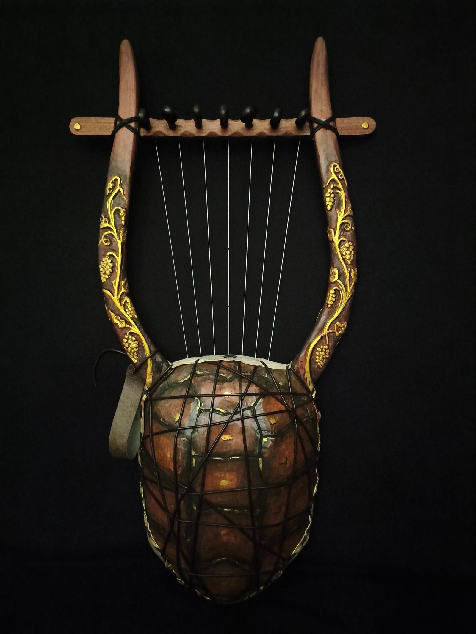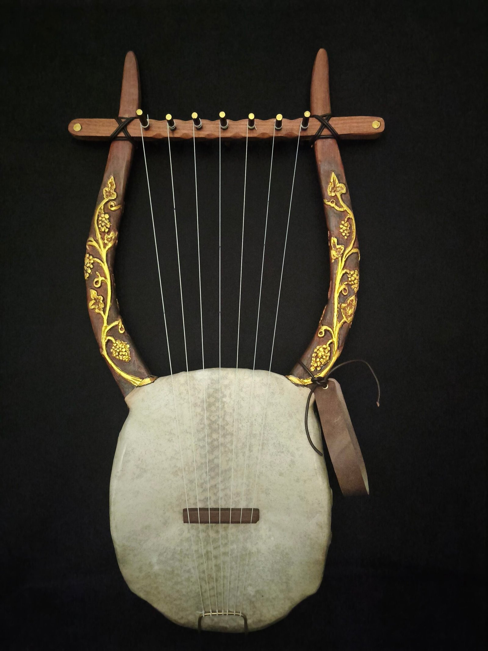 After years of extensive research and experimentation in pursuit of the most justifiably authentic sound, we arrived at two basic models of ancient greek lyre. The difference is based on the type of soundbox, which are wooden replicas of tortoise shells that functioned as resonators. Both models that we have reconstructed are built to professional performance standards. They combine historical accuracy with modern craftsmanship.
